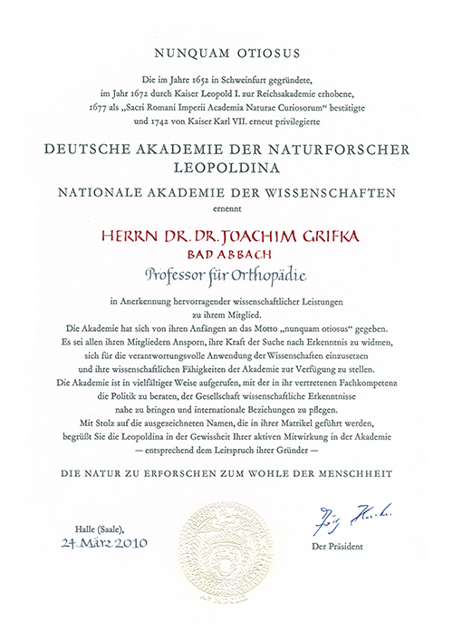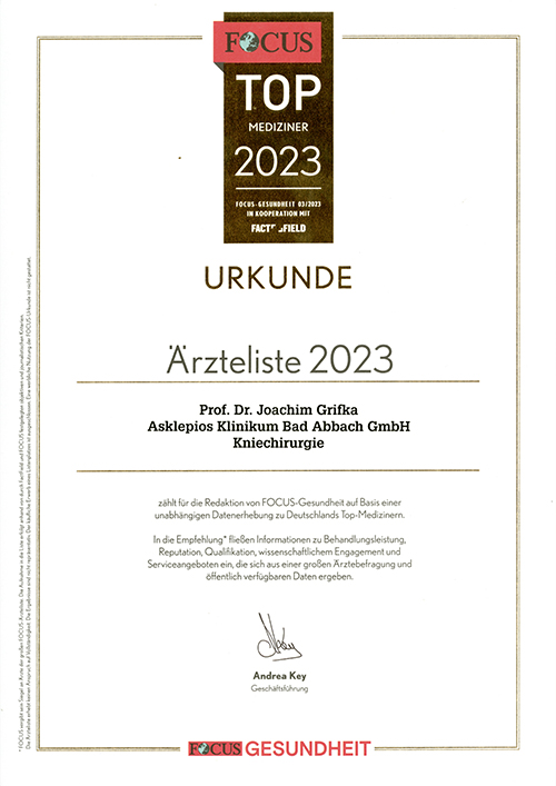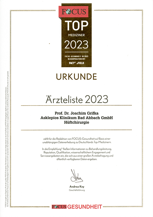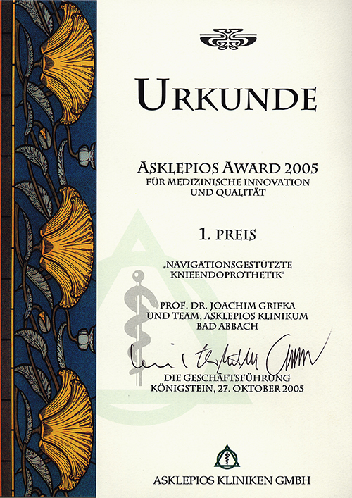 2001 | Gemeinsame Forschungsarbeit zur Navigationstechnik bei künstlichen Knie- und Hüftgelenken, mit den Firmen BrainLab, DePuy und Aesculap