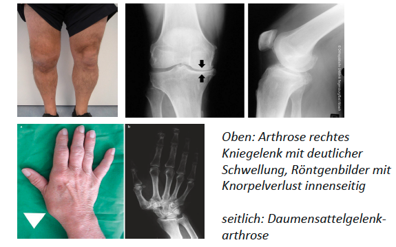 Arthrose ist eine Abnutzung des Gelenkknorpels, eine typische Degeneration, also ein Verschleiß. Wir brauchen den Gelenkknorpel für das perfekte Durchbewegen und Belasten der Gelenke. Andererseits führt zu viel Belastung oder ungünstige Belastung, z.B. durch vermehrten Druck, Übergewicht, Stop-and go-Sportarten, zum Knorpelverschleiß. Vorrangig sind die Beingelenke betroffen, also Hüfte, Knie, Sprunggelenke, aber auch Gelenke an der Hand und Schulter.
